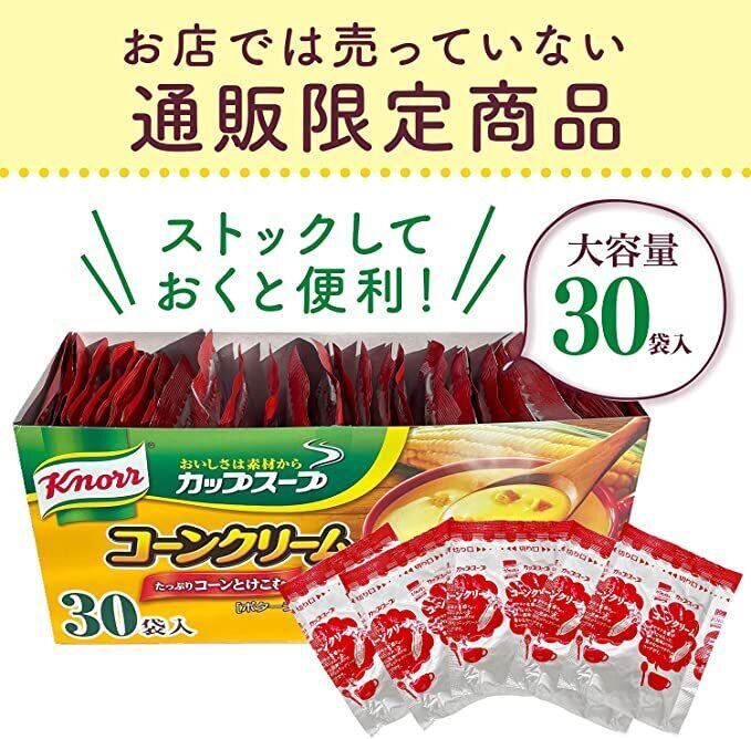 原材料:スイートコーン、でん粉、砂糖、クリーミングパウダー、デキストリン、食用加工油脂、食塩、乳糖、全粉乳、オニオン、チーズ、じゃがいも、コーンバターパウダー、バターソテーオニオンパウダー、濃縮ホエイ、乳たん白、チキンエキス、酵母エキス、香辛料、うきみ(クルトン)/調味料(アミノ酸等)、膨脹剤、(一部に小麦・乳成分・大豆・鶏肉を含む)